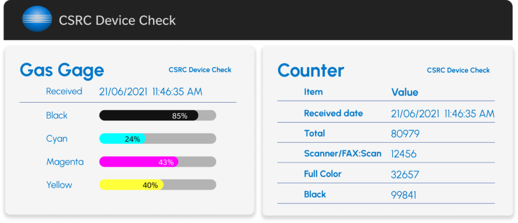 With the CS Remote Care concept, Konica Minolta ensures minimal downtime for your output devices, boosts productivity, and allows routine maintenance to be scheduled around your work demands.